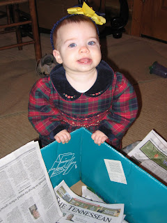 This little girl had the best time helping unload newspapers while the rest of us tried to pack. She LOVED taking all the papers out of the box!Since Haven was cribless, Mombo stepped up to the plate during naptime. I love the shape of that little sleeping mouth!Haven and Elijah enjoyed one last night together in their first room. It was quite a treat for Haven to be up on the big bed; they were both really excited.Last family photo at the cabin:Eric and I were in for a very late night leading me to common mover's question: "Why do we have so much stuff?!?!?!" 1.22.2010